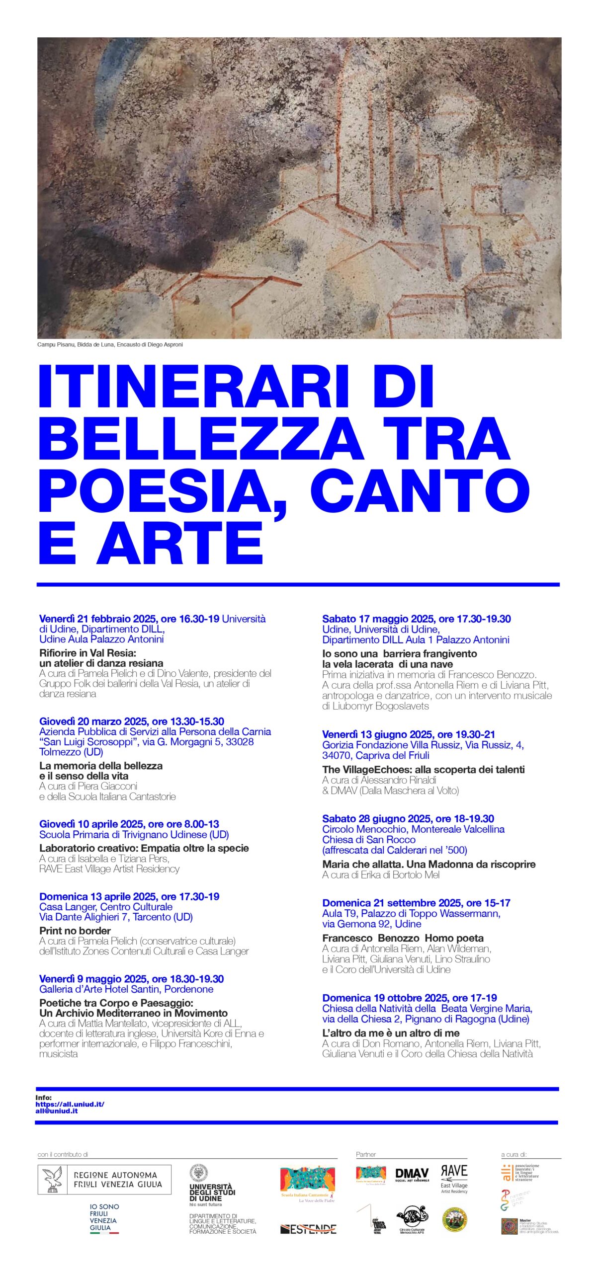 Da venerdì 21 febbraio 2025 parte il nuovo progetto di ALL 2025, Itinerari di Bellezza tra Poesia, Canto e Arte (Vincitore del Bando Regionale Divulgazione della Cultura Umanistica della Regione FVG)