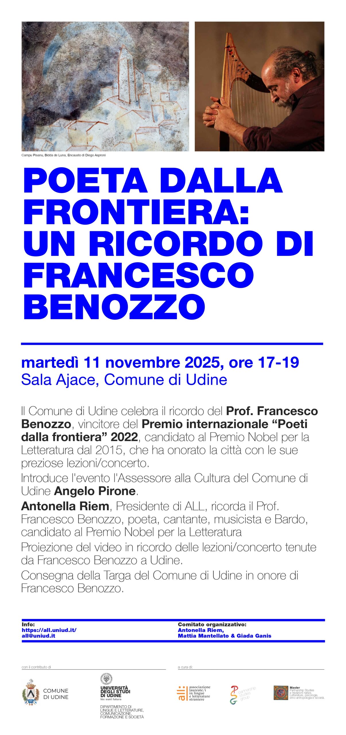 Un ricordo di Francesco Benozzo con il Comune di Udine, martedì 11 novembre, ore 17-19 in Sala Ajace, Comune di Udine